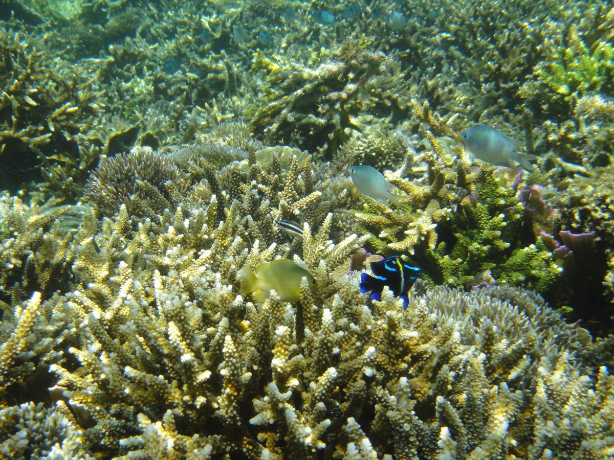 魚や珊瑚は決して多くはないが生き生きとしており、非常にきれいな海だ。泳ぐ技術がないのであまり遠くまでは行かなかったが、行けばきっとさらにすばらしい世界が広がっていることだろう。